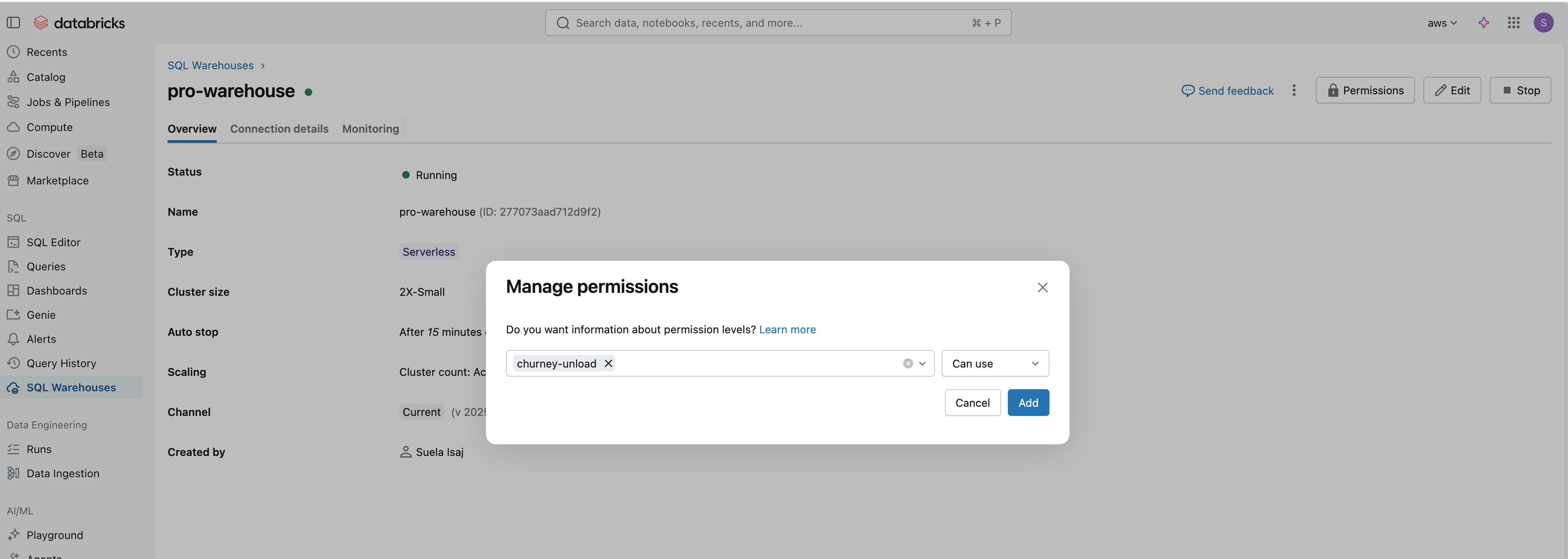 GRANT CREATE EXTERNAL TABLE ON EXTERNAL LOCATION `churney_external` TO `Churney`;